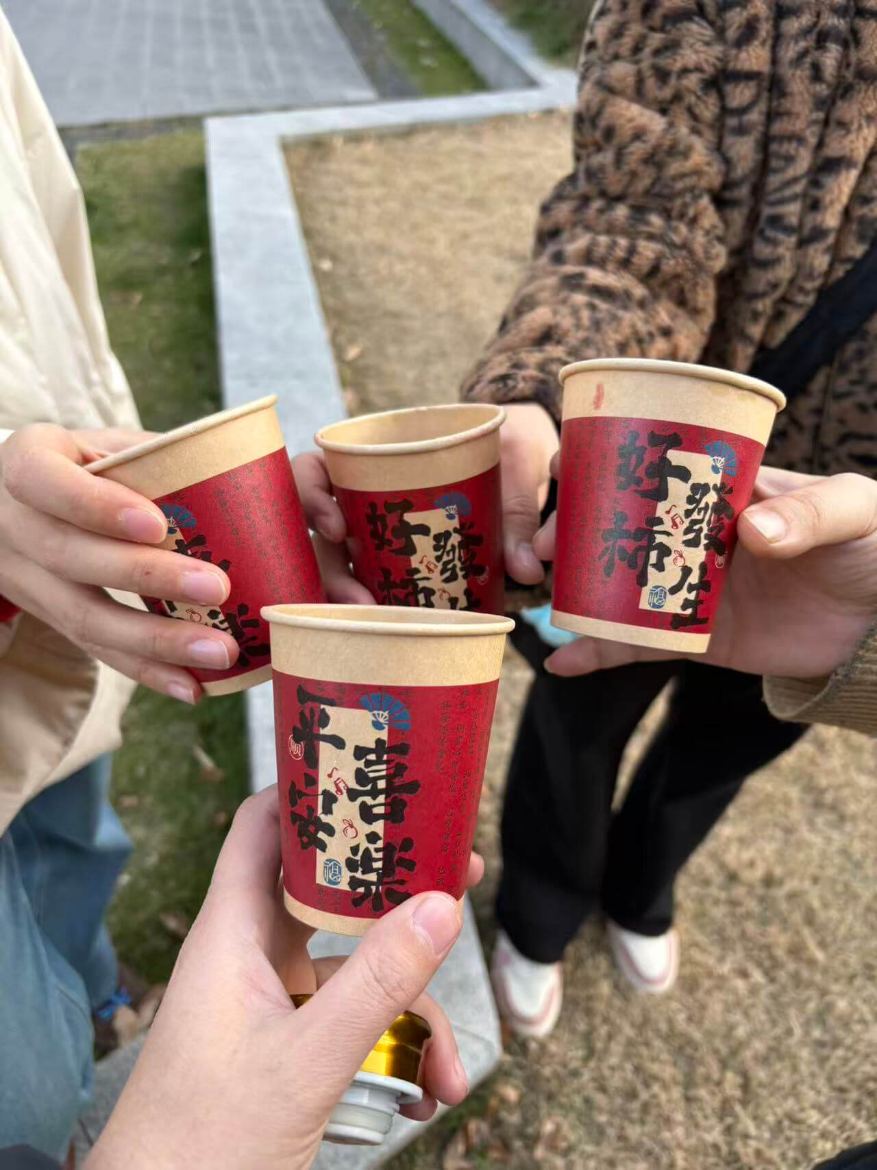 从一杯温热的养生茶开始,杯盏相碰,祝福交织——「平安喜乐」「好发柿生」,恰如我们此刻相聚的心愿。