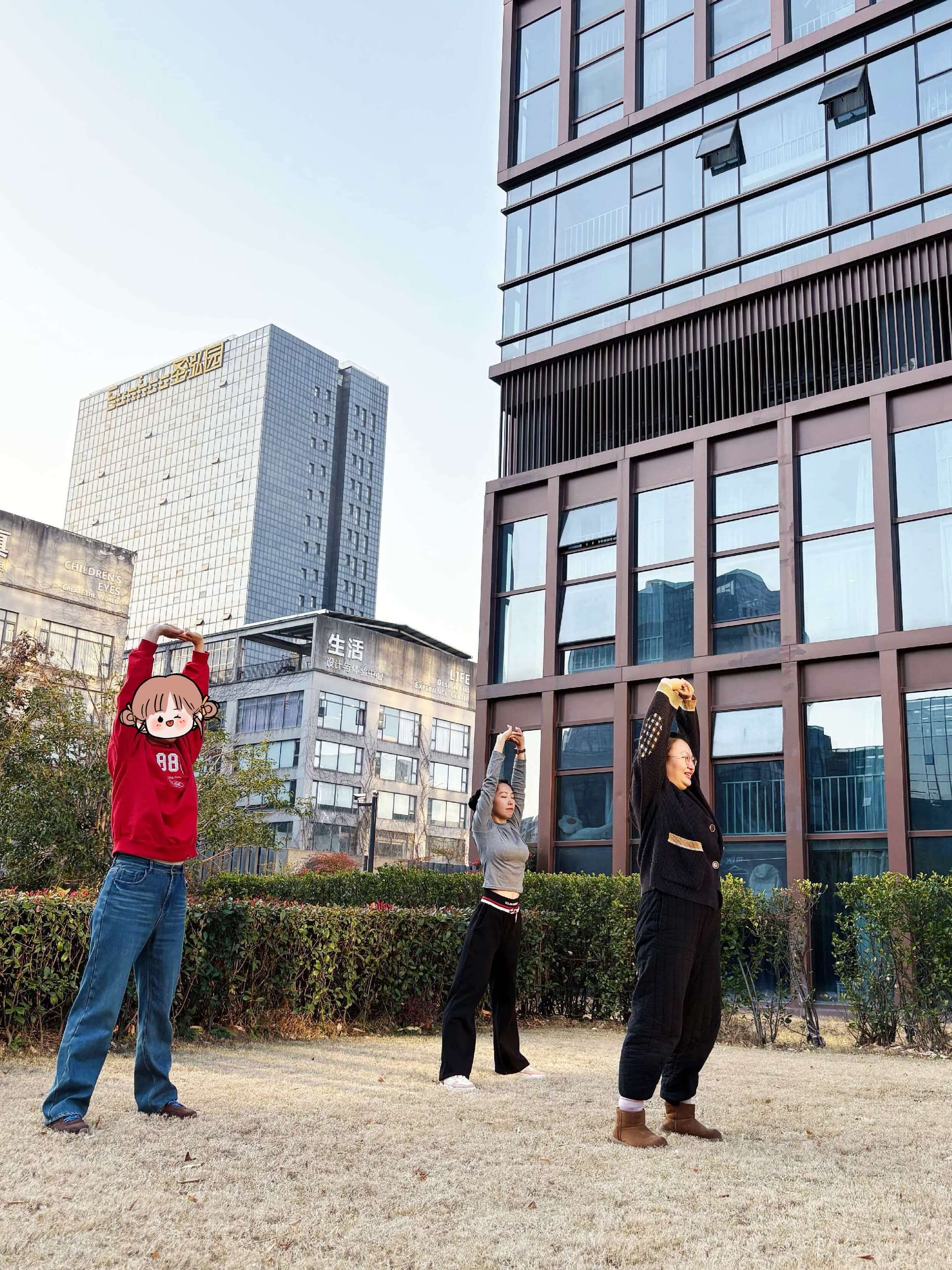 我们走到户外,在绿意与楼影之间,开启了一场专注的身体对话。